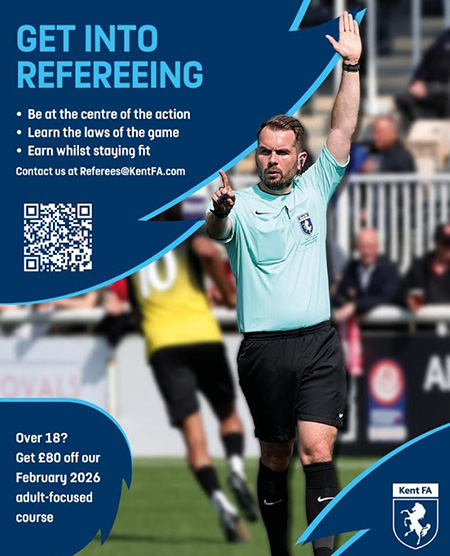 The Kent County FA are hosting a series of SIX discounted referee courses in February (REDUCED BY £80), discounted for everyone!